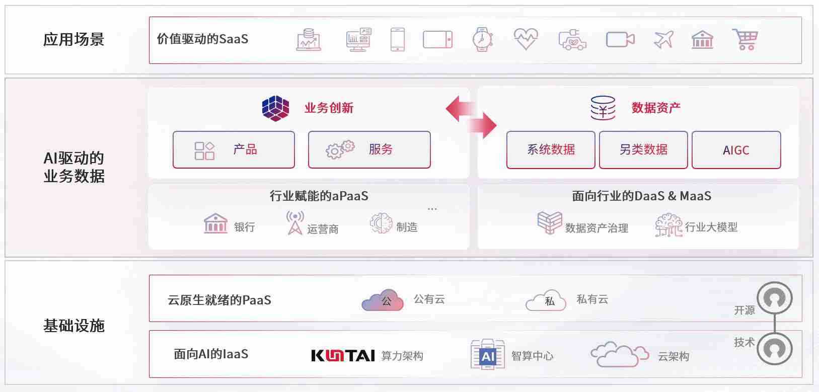 数字时代,,,围绕企业数字化转型的关键要素,,,,PA真人游戏数码开创性的提出数云融合战略和技术体系框架,,着力在云原生、、、、数字原生、、AI原生和信创产业上架构产品和服务能力,,为处在不同数字化转型阶段的快消零售、、、、汽车、、金融、、医疗、、、、政企、、、教育、、运营商等行业客户提供泛在的敏捷IT能力和融合的数据驱动能力,,,构建跨界融合创新的数字业务场景和新业务模式,,,,助力企业级客户建立面向未来的核心能力和竞争优势,,,,全面推动社会的数字化、、、智能化转型升级。。